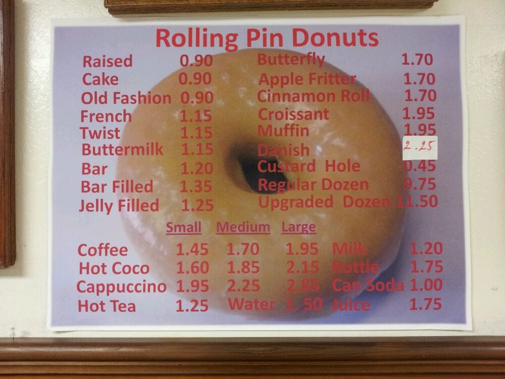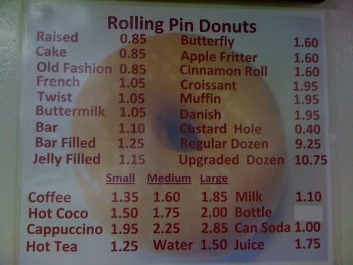 Rolling Pin Donuts Menu